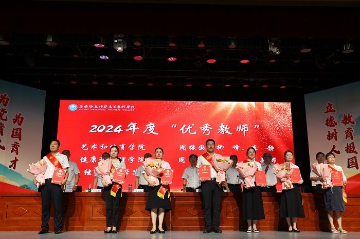 省优秀教师付红波和受表彰的师德师风标兵代表、优秀教师代表、优秀教育工作者代表、优秀辅导员代表、先进集体代表分别发言。他们分享了自己对教师的责任、使命、担当、情怀的理解和坚守,表示未来将继续怀揣对教育的热爱与执着,继续提升师德修养和业务水平,以更加饱满的热情投入到教育事业中,为阜阳幼专辉煌的明天、为国家的教育事业贡献自己更大智慧和力量。
