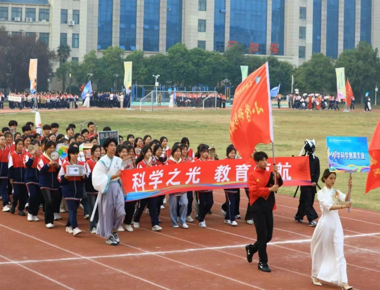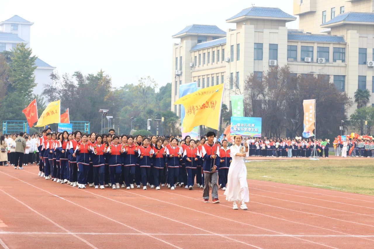 开幕式上,伴随激昂雄壮的《运动员进行曲》,国旗队、红旗队、各学院运动员代表队及教职工运动员代表队依次迈着整齐划一、铿锵有力的步伐从主席台前走过,展现了幼专师生昂扬的精神风貌。