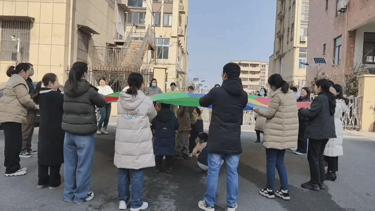 游戏是儿童的基本活动,经过精心准备,老师们和罗庄社区的小朋友们一起玩了“欢乐彩虹伞”和“珠行万里”的游戏,小朋友们伴随欢动的音乐旋律和节奏做出不同的动作,让轨道首尾相连,滚珠在轨道上穿行,锻炼小朋友的平衡力和团结协作能力,活动中大家配合默契,现场充满了欢声笑语。