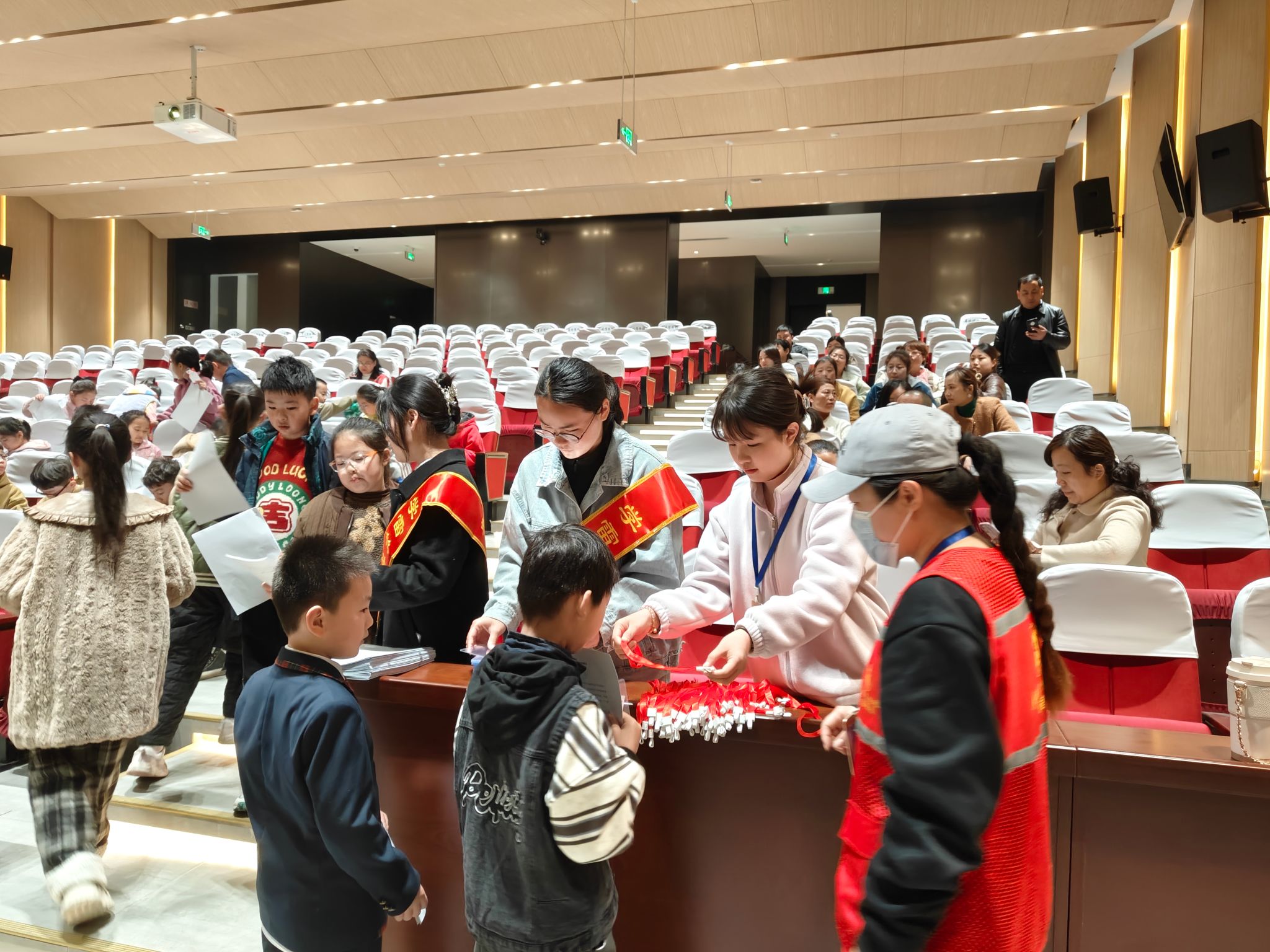 在“阜博红小小志愿者见面会的活动上,他们协助工作人员分发材料、维护现场秩序,展现了大学生的团结合作精神和奉献精神。