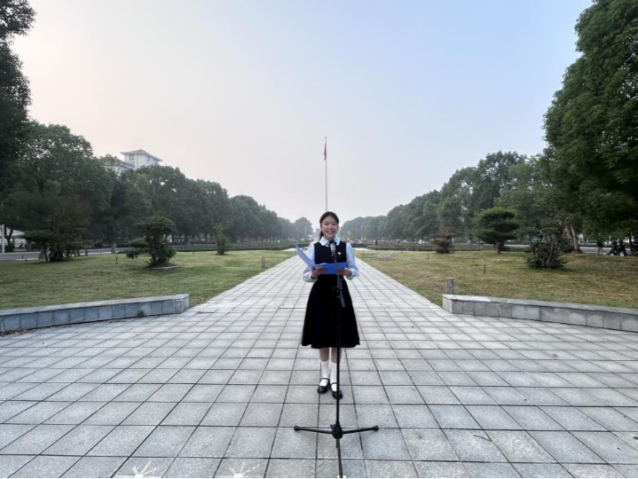 学生代表王新洁以《身心同发展,青春向未来》为主题作国旗下的演讲。她表示,作为新时代的新青年,要将身心健康的理念融入日常,让每一次呼吸、每一次运动、每一次思考都成为自我成长的契机。要珍惜时光,身心两健同发展,锻炼健康的体魄和阳光的心态,培养创新思维和实践能力。