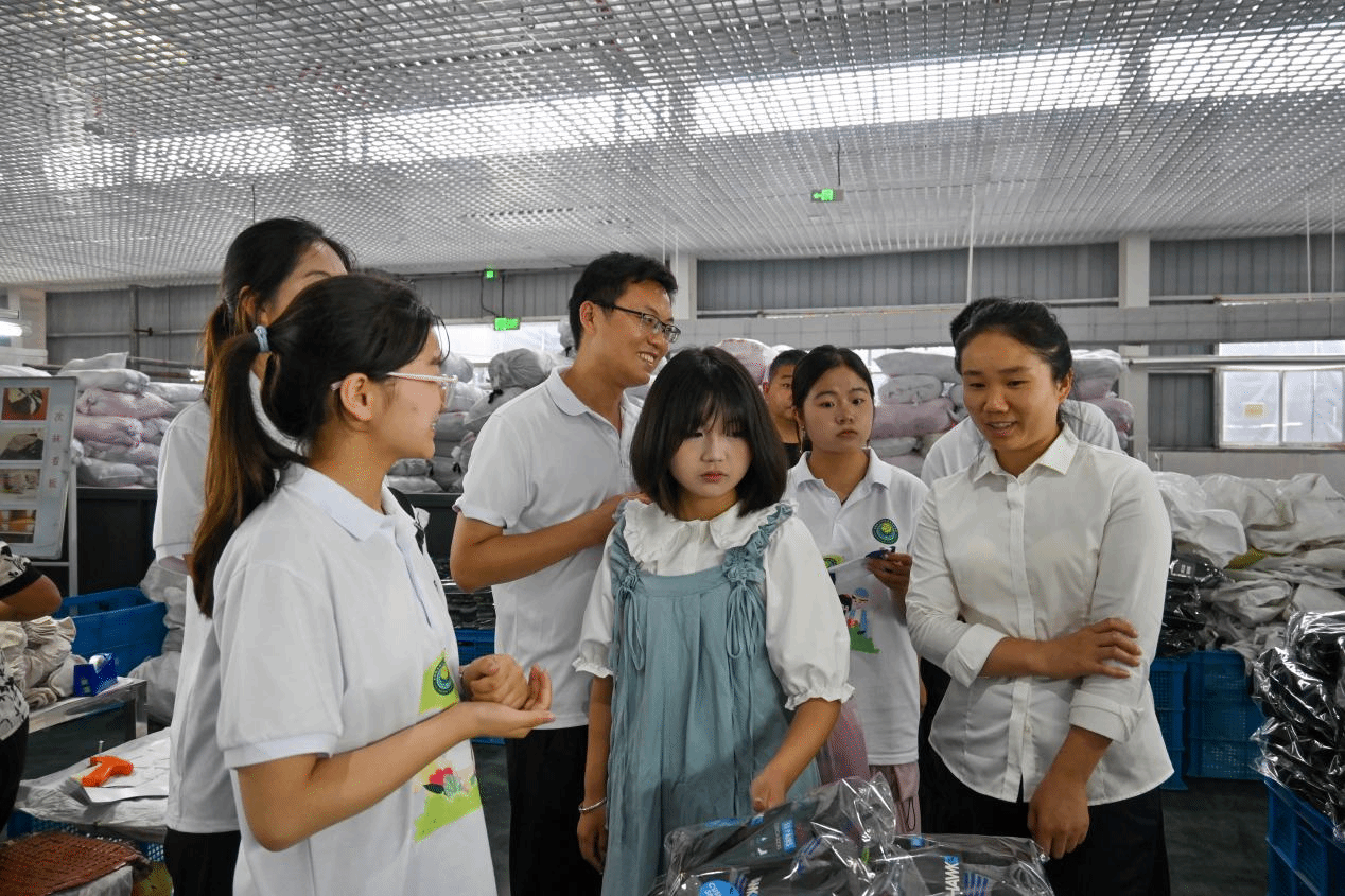 袜子“小车间”成就脱贫“大舞台” “梦想学院”支教团队赴会龙镇袜业产业园参观学习