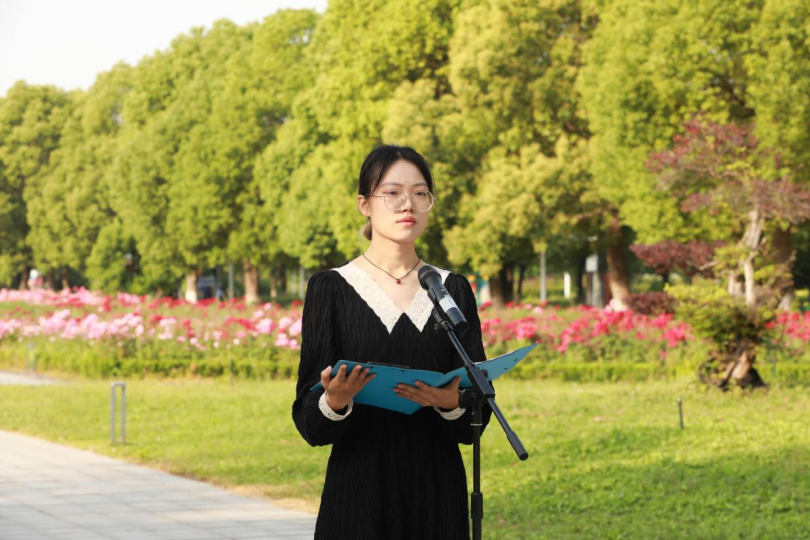 来自2021级幼管1班的武佳慧同学以“缤纷校园生活,绽放活力学前”为主题作国旗下的演讲。武佳慧同学在上周刚刚落幕的趣味运动会中取得了个人单项第二名的好成绩,她表示,作为学前人,希望大家能够珍惜每一次参加校园活动的机会,积极参与,全力以赴,用专业、用青春、用激情展现自我,用成功和努力展示自己的风采,少年强则国强,学院也因我们而更加精彩,更加具有活力!