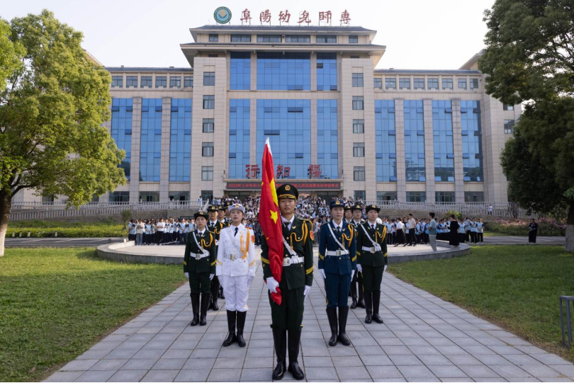 春去夏至,万木葱茏,生机勃发。为贯彻“仁爱学前、活力学前、技能学前、智慧学前”的学院发展特色,学前教育学院于5月15日在行知楼前半圆广场举行庄严的升旗仪式,本次升旗仪式的主题是“活动育人,建设活力学前”。阜阳市人大常委会副主任、校党委书记金杰出席升旗仪式,校团委负责人高天睿、学院全体师生参加本次升旗仪式,仪式由学院团总支书记随可可主持。