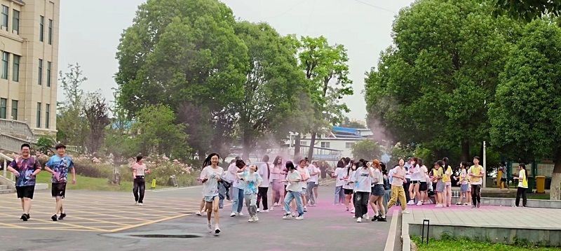 本次活动全程共分为五个彩色站点,依次为起点(南门口)—文津楼—行知楼—至善楼—德馨楼—操场(终点),每经过一个彩色站,工作人员均会向参与者撒播彩粉,以示祝福。