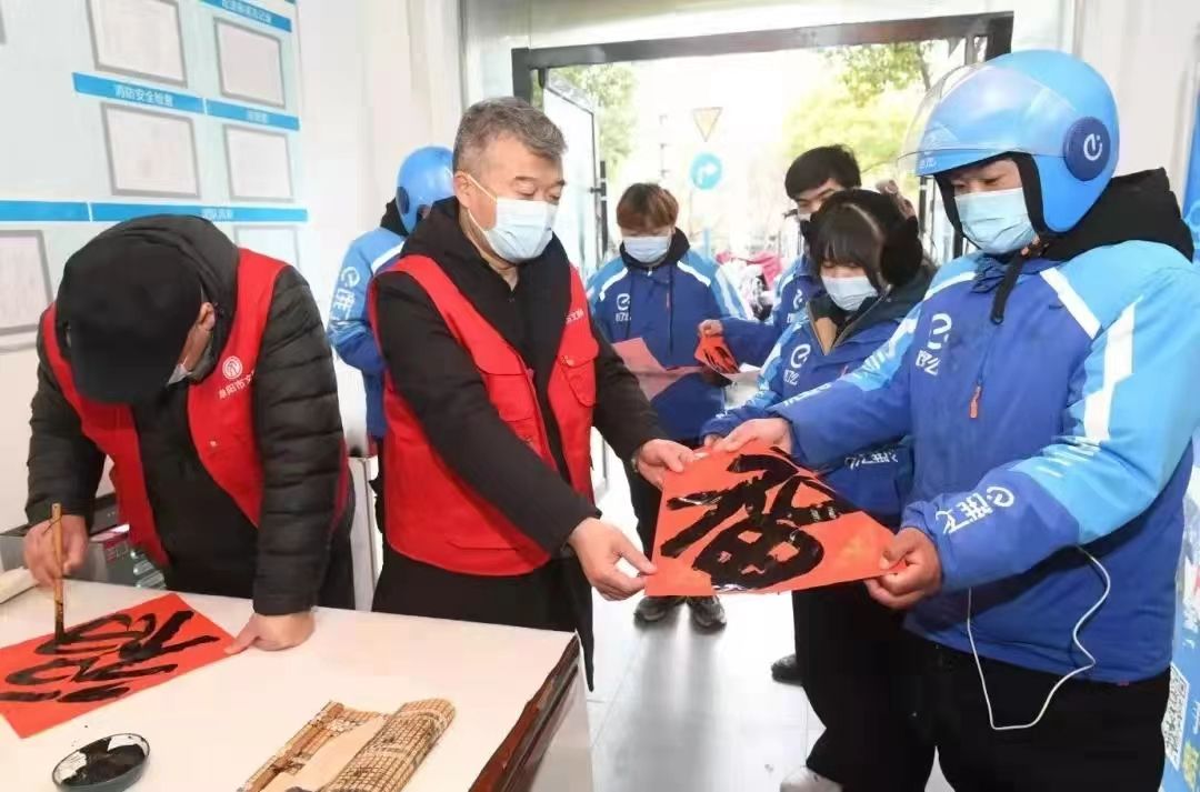 苏海东老师一直积极参与省、市文联组织的文艺志愿服务活动。他业务精湛,多次获得国家级、省级书法展大奖;他积极参加各类文化下基层活动,二十多年来,坚持走进乡镇、企业和机关,书写春联和书法作品,受到广泛欢迎和好评。