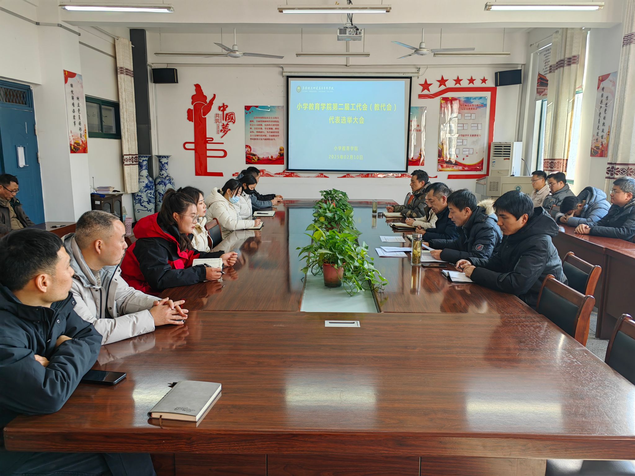 2月10日下午,小学教育学院在文津楼201会议室召开全体教职工大会。选举出席学校第二届教职工代表大会暨第二届工会会员代表大会(以下简称“两代会”)的代表。校党委委员、工会主席沈辉和学院全体教职工参加大会,会议由学院党总支书记朱启俊主持。