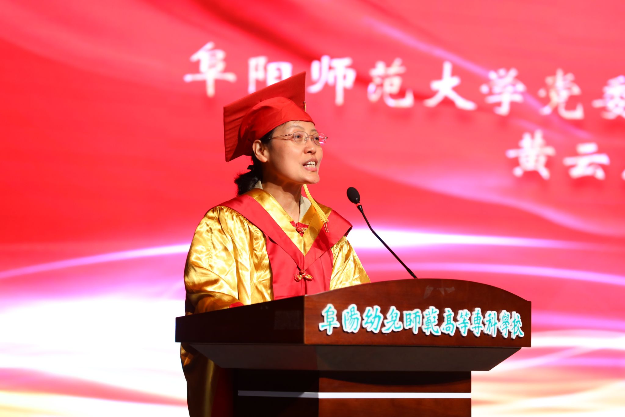 优秀毕业生代表杨丹妮深情回顾了在阜阳幼专成长的点滴,表达了对母校精心培育、师长辛勤教导的由衷感激。教师代表白莉分享了见证同学们成长的喜悦,并送上了最真挚的祝福和嘱托。(通讯员:王小宝)