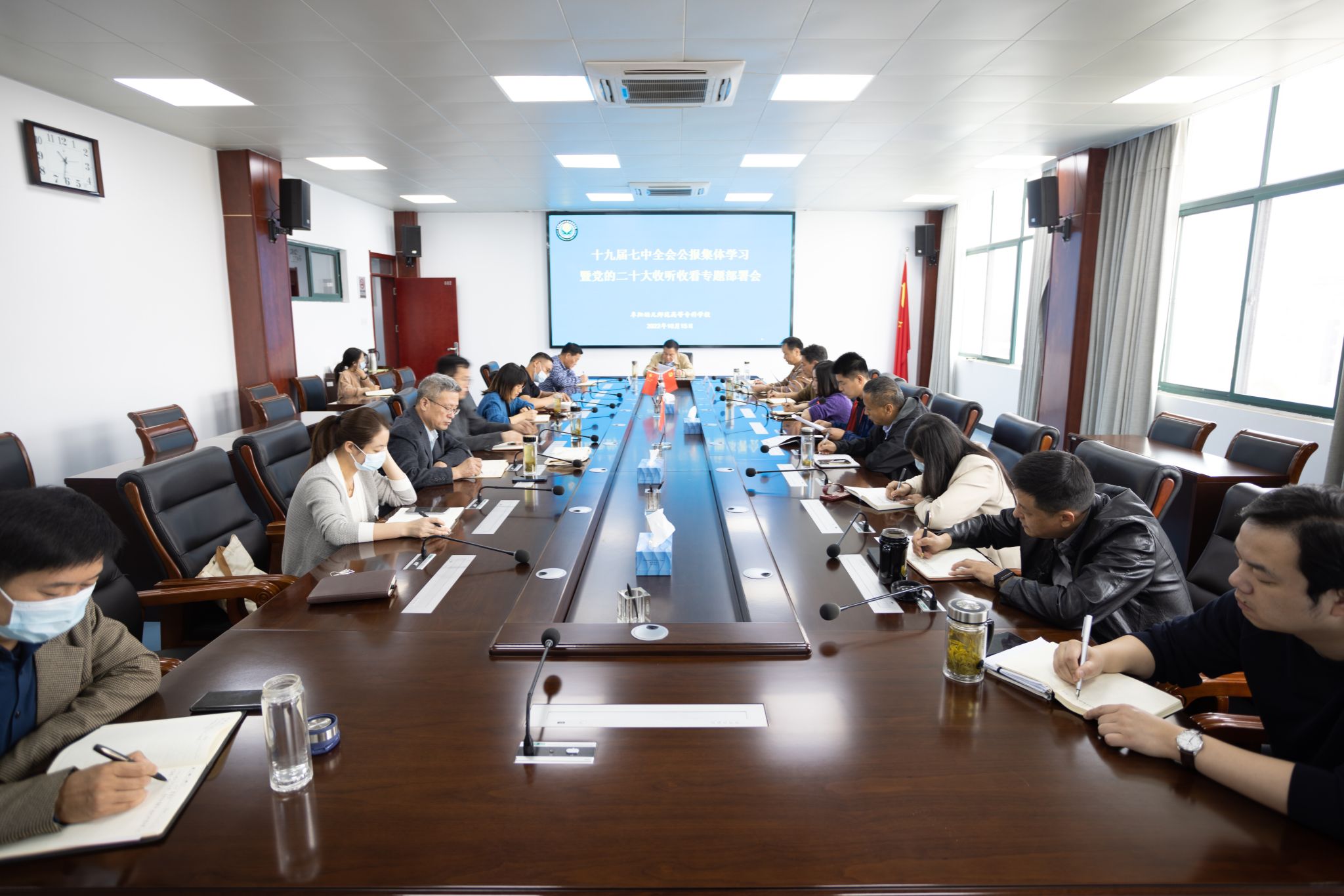 会议集体学习了中国共产党第十九届中央委员会第七次全体会议公报,传达了《中共阜阳市委办公室关于认真组织收听收看习近平总书记在中国共产党第二十次全国代表大会上的报告的通知》,研究部署我校贯彻落实措施。