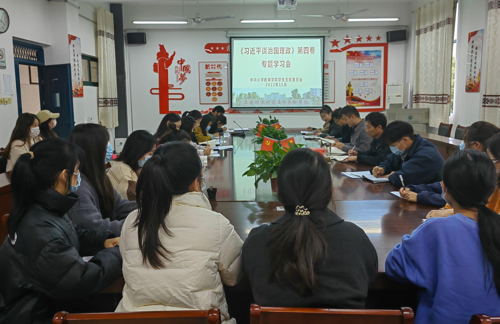 为深入学习领悟习近平新时代中国特色社会主义思想,不断提高党员师生的理论素养和思想觉悟,11月16日,小学教育学院学生党支部在文津楼201,召开《习近平谈治国理政》第四卷专题学习会。支部党员、预备党员、入党积极分子参会,会议由支部书记刘磊主持,学院党总支负责人朱启俊作总结发言。