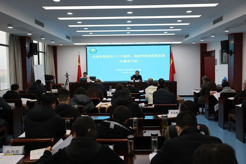 1月4日,我校“全面贯彻党的二十大精神,推进学校高质量发展”专题读书班开班。本次专题读书班旨在动员和组织学校领导干部深入学习贯彻党的二十大精神,教育引导广大党员干部更加深刻领悟“两个确立”的重要意义,切实把思想和行动统一到党的二十大精神上来,把力量集中到推进学校高质量发展上来。校领导金杰、汤志、于华献、孙驰、陈绪龙、许宗志、徐常恺,出席开班式,市人大常委会副主任、校党委书记金杰主持并作开班动员讲话,本次专题班读书班为期两天,学校中层副职以上领导干部参加专题学习。