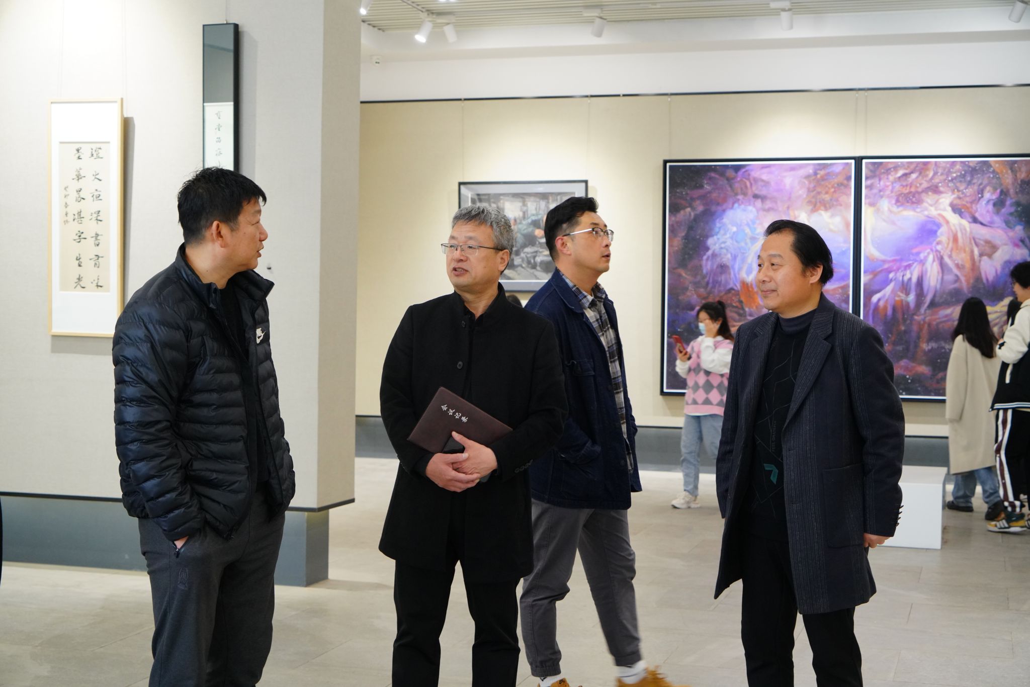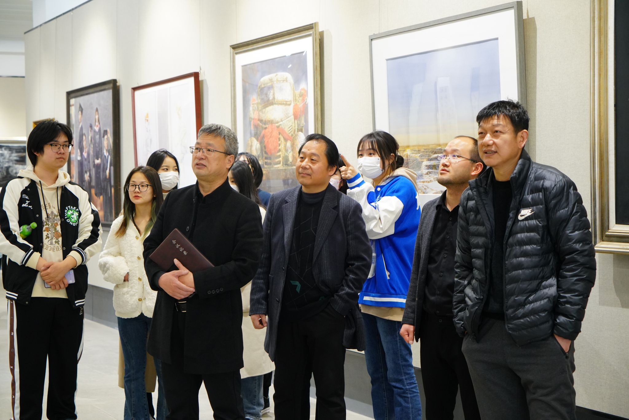 阜阳师范大学美术学院院长魏亮热情接待,并带领大家观摩学习了美术学院师生作品展。参观展览后,魏亮就美术学院发展概况、办学特色和发展定位进行了交流,对联合培养的专升本学生给予厚望,并欢迎各位同学们随时前来参观和学习。
