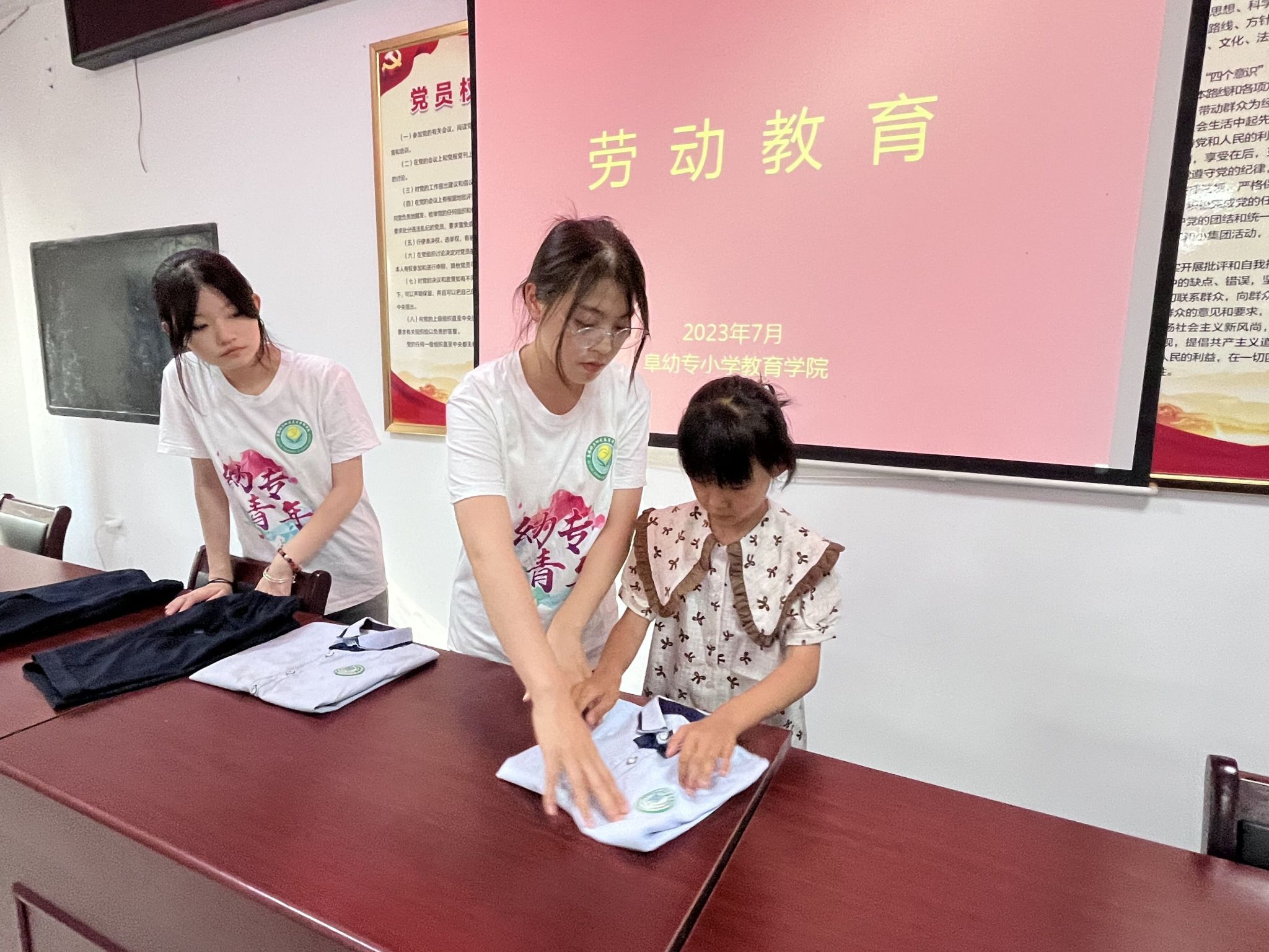 同学们认真叠衣服