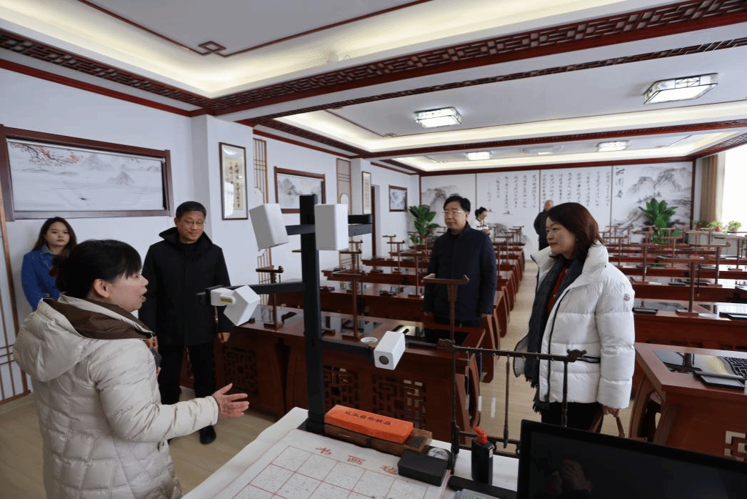 小学教育学院院长郭玉敏介绍了学院的基本情况,重点介绍了“三全育人”试点院系的建设特色,带领大家参观了学院的实训室及“三全育人”“立德铸魂厅、科教兴国厅、书香翰墨厅”三厅文化角。