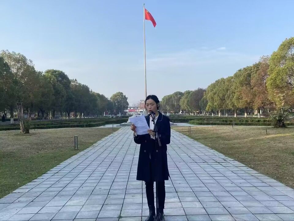早上七点,迎着晨曦,同学们昂首挺立,列队整齐,目视国旗。随着雄壮的国歌声响彻校园,五星红旗冉冉升起,全体师生行注目礼。随后,学生代表文相捷作国旗下的幼专青年说,倡议全体学生要刻苦学习,为祖国的繁荣富强贡献自己的力量。教师代表王资颖作国旗下的主题微团课,她通过讲述古今中华英烈的事迹,解答了“我们为什么要缅怀英烈,为什么要铭记历史的问题。她以先人的事迹激励学生学习先烈的英勇事迹,继承和发扬先烈的精神,勇担时代重任,为中华民族的伟大复兴贡献自己的青春力量。