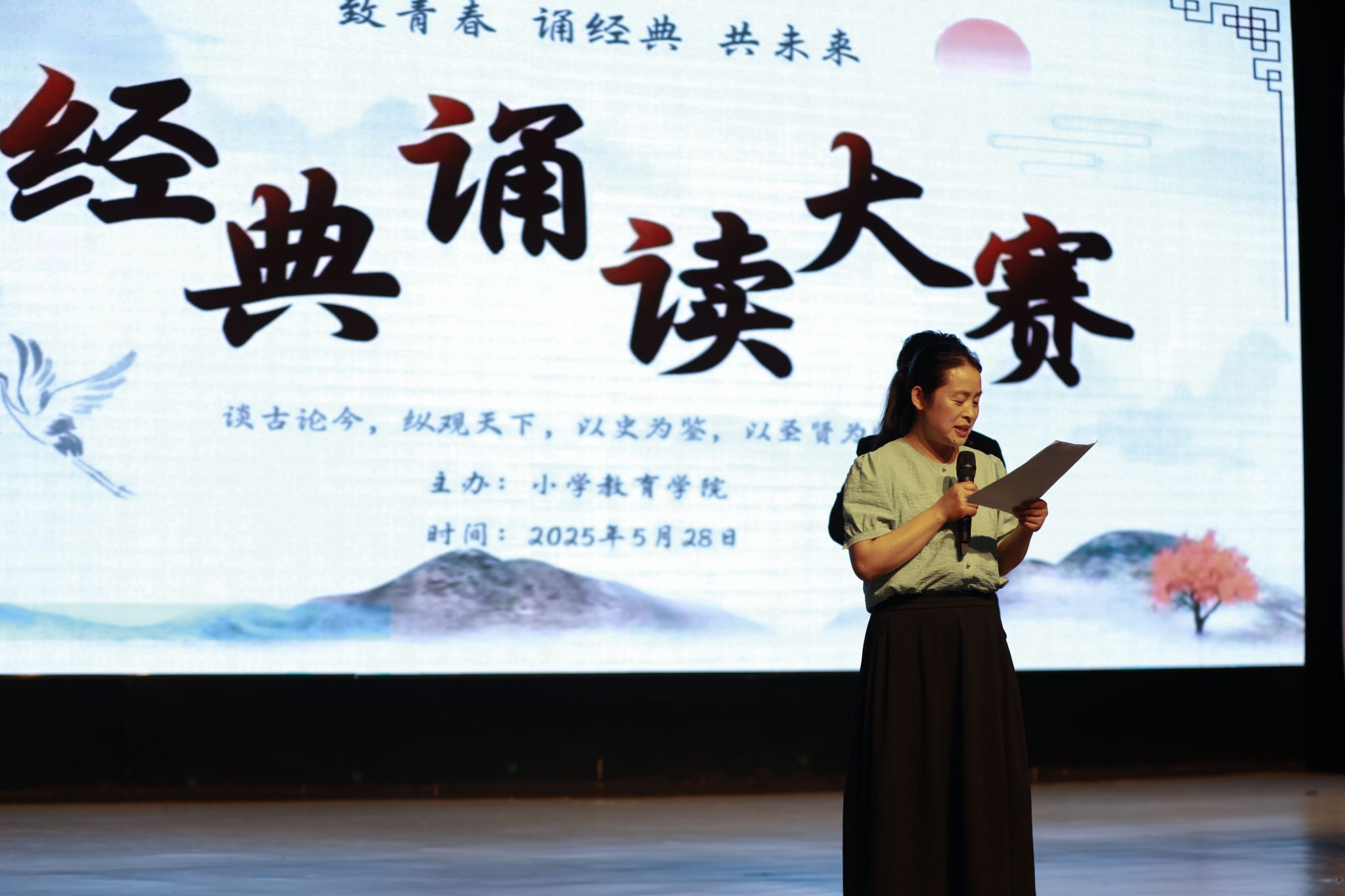 为弘扬中华优秀传统文化,增强青年学子文化自信,5月28日,小学教育学院在演艺大厅举行了“诵经典 致青春 共未来”经典诵读决赛。校党委副书记、校长汤志出席活动,相关学院及职能部门负责人、师生代表共同观看了比赛。