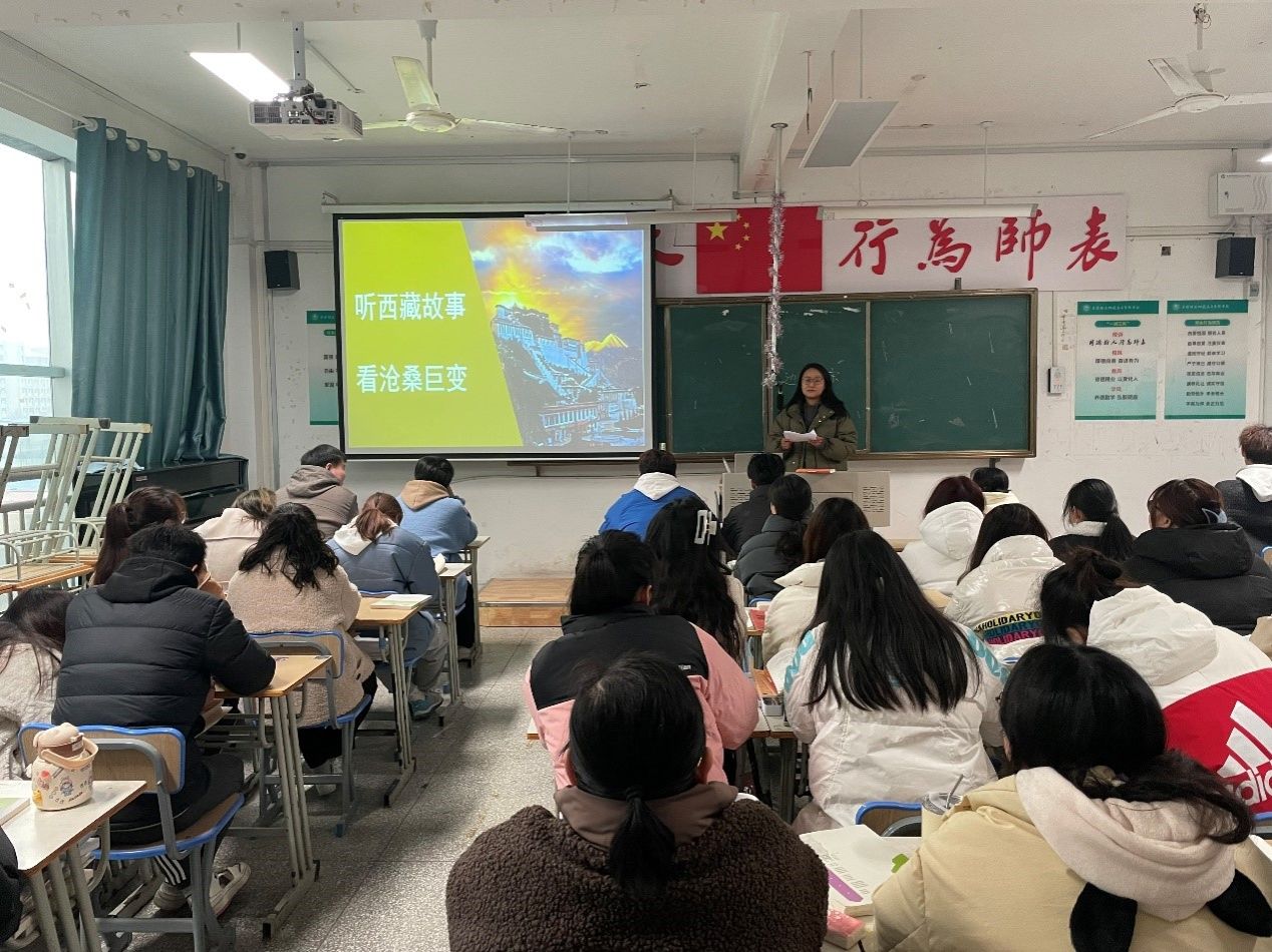 来自西藏的年轻教师边巴央宗把更多现实社会场景搬到思政课堂,积极整合多方资源、扩展课堂半径,以《听西藏故事 看沧桑巨变》开展思想政治教育。课程紧紧抓住铸牢中华民族共同体意识这条主线,画好民族团结“同心圆”、共筑民族复兴“中国梦”,增强了学生对于西藏历史文化及其发展现状的了解,有力地加强了学生民族团结意识、凝聚起团结奋斗的磅礴力量,延伸了思政第一课效果,增强了课程说服力。